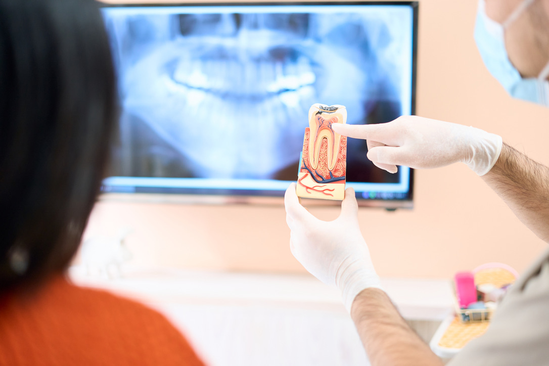 神経まで進行した虫歯や、治療後に膿がたまってしまった歯は、放置すると抜歯やインプラントが必要になることがあります。当院では根管治療により歯の内部を丁寧に清掃・消毒し、細菌を取り除くことで再発を防ぎ、大切な歯をできる限り残す治療を行っています。